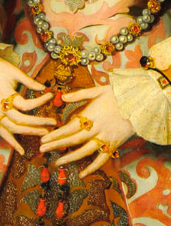 The Melton Constable Portrait Detail Published September 6, 2012 at 250 × 330 in The “Melton Constable” or “Hastings” Portrait of Queen Katherine Parr Detail of the girdle which is similar to that of Queen Jane Seymour’s in her painting by Hans Holbein; courtesy of Dr. Edwards, Ph.D.