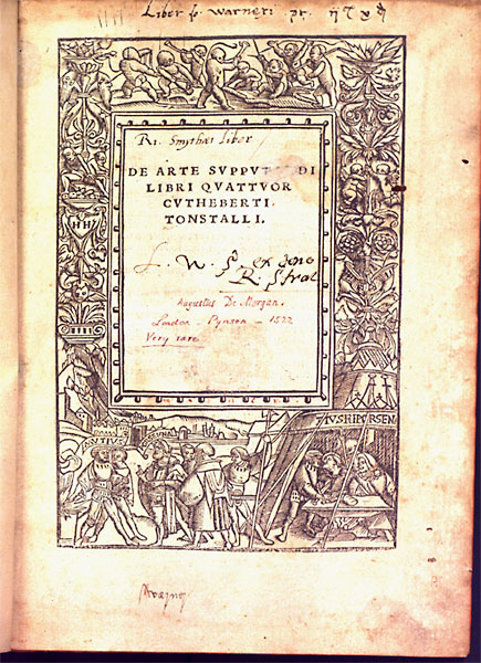 De arte supputandi libri quattuor Cuthbert Tunstall London: R. Pynson, 1522 [DeM] L.1 [Tunstall] SSR