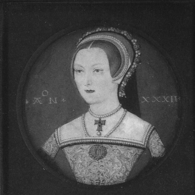 Miniature of Katherine Parr by an unknown artist, c.1544. The miniature gives Katherine’s age as 32. By the time the miniature was painted Katherine was queen, having married Henry VIII on 12th July 1543. The tau cross she wears belonged to Jane Seymour, Henry VIII’s third wife; after her death in 1537 the item was passed on to his subsequent wives, along with the rest of the queen’s jewels. I believe the miniature is currently held at Sudeley Castle, which also houses a miniature of Jane Seymour (in which she is depicted wearing the cross).