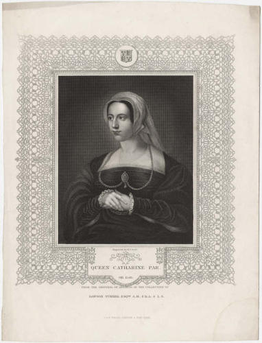 Portrait of Queen Catherine Parr with ornate decorative frame.