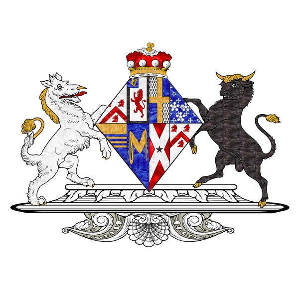 • His second wife was Lady Catherine Talbot (c.1552-1575) [a favorite of Queen Elizabeth], daughter of George Talbot, 6th Earl of Shrewsbury and Lady Gertrude Manners. Catherine was the sister of Lord Francis Talbot who married his younger sister, Lady Anne.