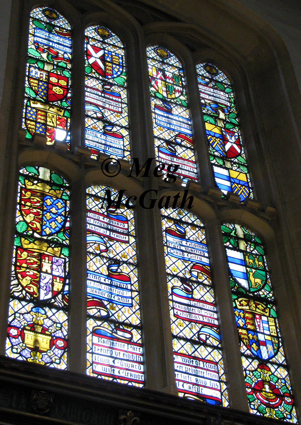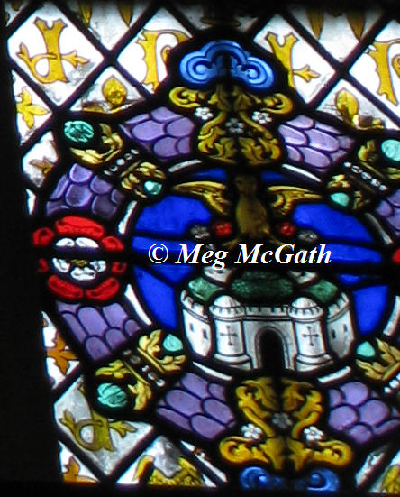 All of King Henry’s wives had one thing in common, they all descended from Edward I; some by his first wife Eleanor of Castile or by his second, Marguerite of France; and in some cases both! In Hampton Court Palace in King Henry VIII’s apartment there are six stained glassed windows showing his wives pedigrees from King Edward I. As some were descended multiple times or by both wives the more prominent ancestry was featured.